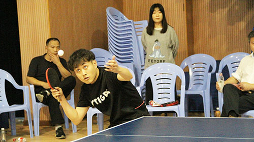 在五大项目中率先开战的羽毛球项目,今年设置了男单、女单、男双三个项目。各个项目的角逐也是高手过招,屡现精彩场面。选手时而温柔接球时而猛烈抽杀,场边观战的人员“好球”“好球”的喝彩声此起彼伏。比赛打到最后阶段,都是公司羽毛球队成员之间的直接对话。有点知根知底的熟悉,又有点临场发挥的偶然性,比赛悬念迭起。最终,郑亮、唐国平、葛跃锋占据男单前三,梁成娟、王雪佼、程旭辉夺下女单前三,潘永明\郑亮、王刚\葛跃锋、王迎卫\周纬三对组合名列男双前三。